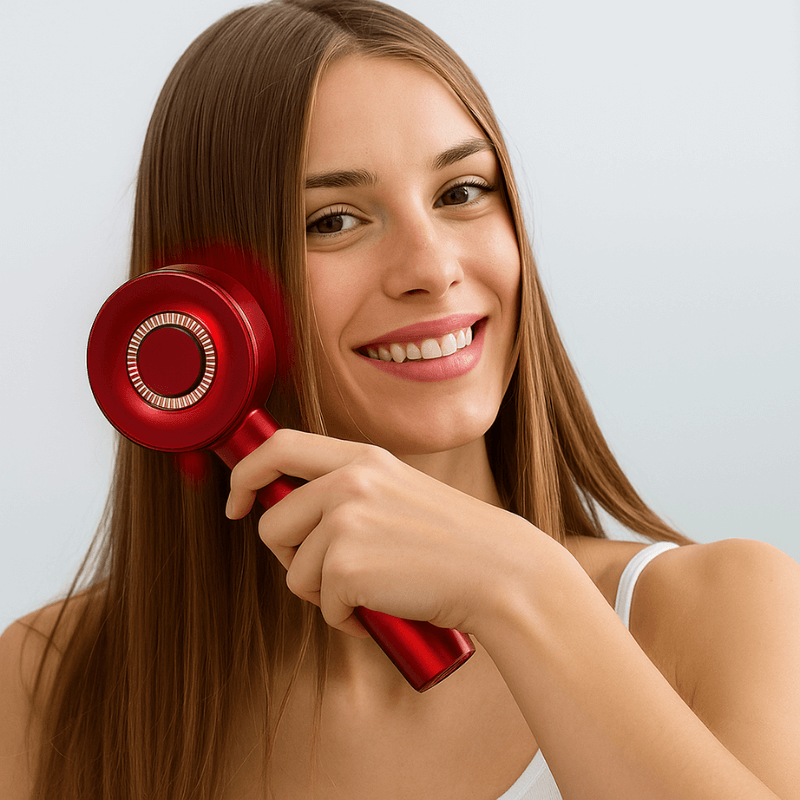 It combines red light therapy, deep scalp massage, and an oil applicator to improve circulation, nourish roots, and promote stronger, healthier hair.